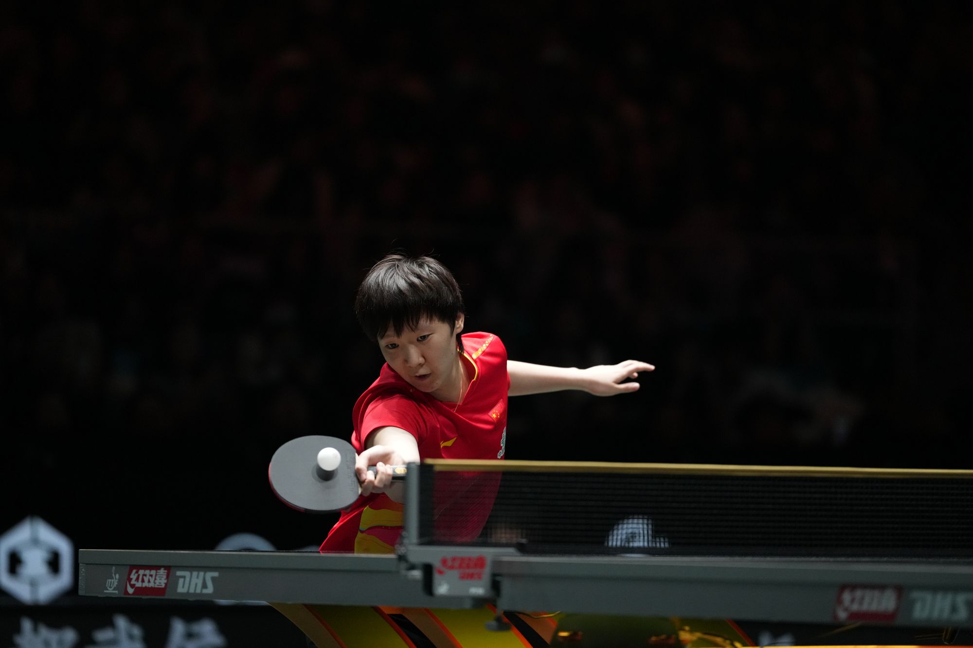 当地时间12月2日晚,中国队王曼昱在成都混团世界杯比赛中。(图/中新社)
