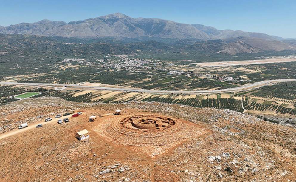 希腊著名的克里特岛上,在海拔约900米的帕普拉山顶,考古人员发掘出一座直径约50米的八重同心圆石墙建筑,中心为带有彩绘的四分穹顶结构。该建筑由青铜时代米诺斯文明(约公元前300~1100年)的先民建造,被认为是当时当地各族群的聚会与仪式举办中心,学者将其比喻为“史前欧盟”。
