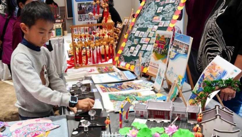 12月27日,北京中轴线世界文化遗产青少年对话会在北京市西城区广阳书院举办。图为对话会的主题展示区域内,参会青少年观展。(图/中新社)