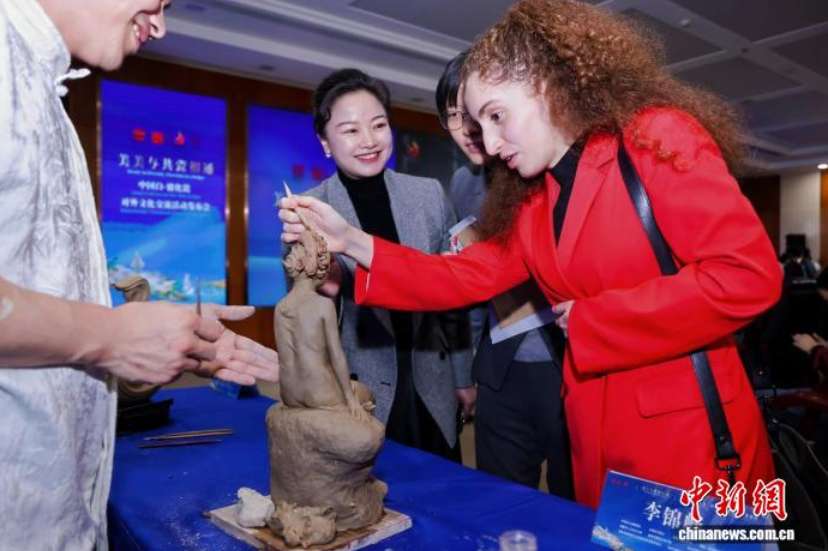 12月29日,外国友人在“中国白·德化瓷”对外文化交流活动启动现场交流互动。(图/中新网)