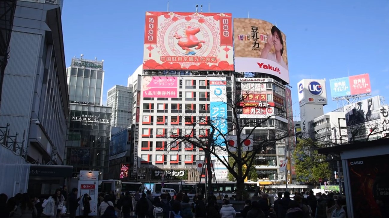 2025年12月29日至2026年1月4日,正值日本新年假期,中国驻东京旅游办事处抓住辞旧迎新的重要时机,在日本东京潮流与文化中心——涩谷站周边街区的多块地标大屏上,全天循环投放“你好!中国”国家旅游形象系列推广视频。此次系列推广视频内容涵盖“你好!中国”国家旅游形象推广、马年新春贺岁以及中国60处世界遗产巡礼,以立体且丰富的视听语言,呈现中国壮丽山河与现代化发展的动人画卷,让“你好!中国”的真诚问候播撒于东京繁华街头,向日本及海外各地民众传递出来自中国的热情邀约。