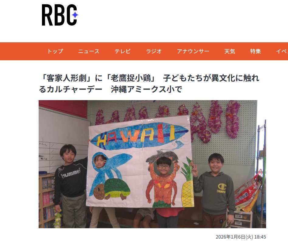 冲绳县宇流麻市的一所小学近日举办了体验世界各国文化的“文化日”活动 。(图/琉球放送报道截图)