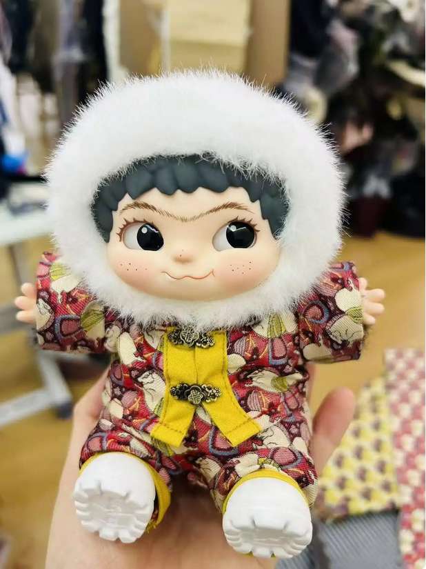 农历春节将至,当人们忙着为家人挑选新衣,身高不过十几厘米的潮玩娃娃们,也换上了精心设计的“新年装”。
