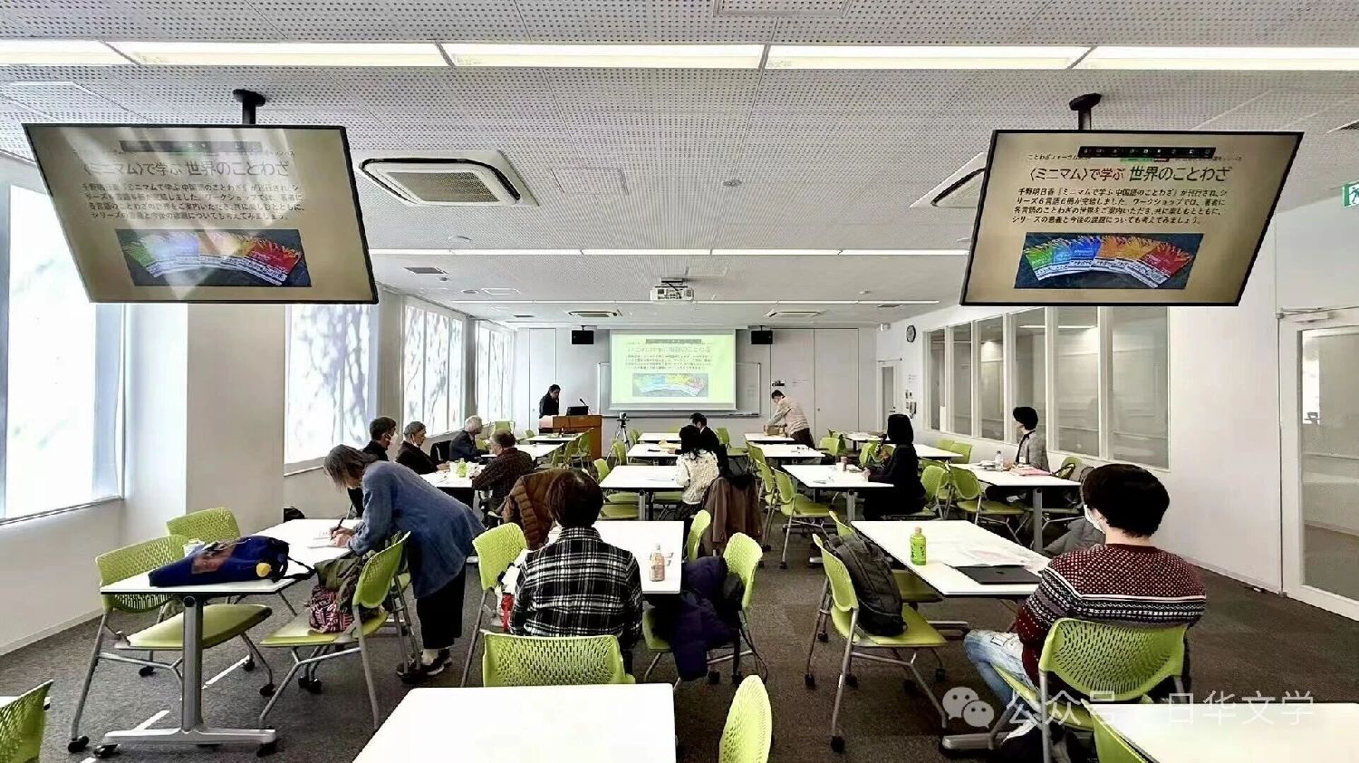 当第二句谚语“活到老学到老”出现在会场屏幕上,多位谚语家马上看懂汉字,说出:“年老いるまで生き、年老いるまで学ぶ。”我接着说,这句中国谚语就是在夸奖各位老师的不断努力。大家露出了笑容,会场气氛活跃起来了……