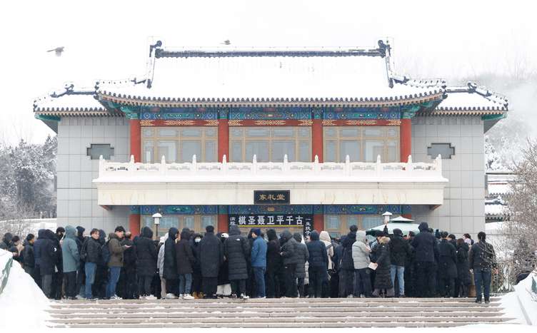 1月18日,聂卫平遗体告别仪式在北京八宝山殡仪馆东礼堂举行。社会各界人士和棋迷怀着沉痛心情,前来与“棋圣”作最后告别。(图/中新社)