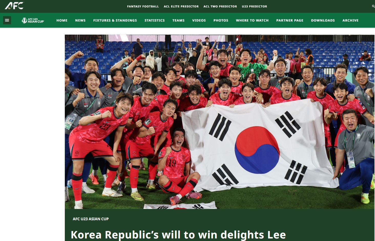 韩国队在8强战中以2比1击败澳大利亚,成功搭上四强末班车。(图/亚洲足球联合会网站截图)