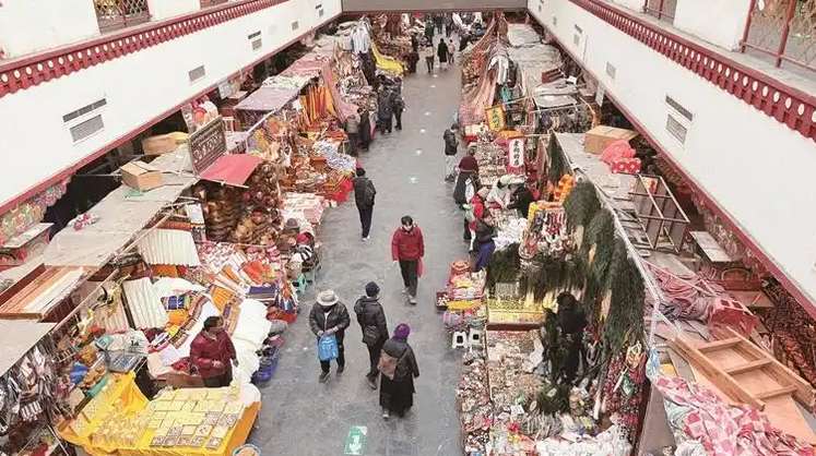 近日,西藏拉萨八廓商城内,人们开始逛年货大集、置办新春好物。(图/拉萨《西藏商报》)