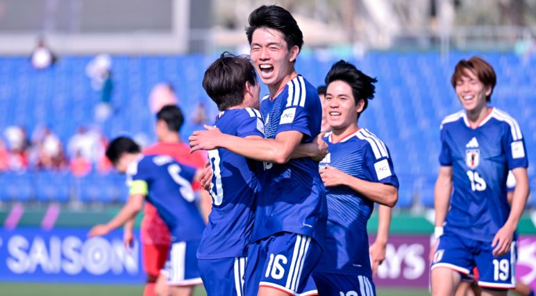 20日,日本队在进球后庆祝。(图/亚足联官网)