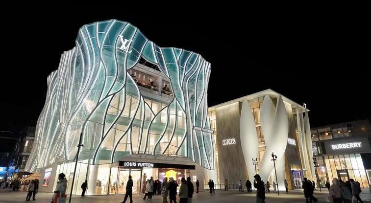 走在三里屯太古里北区,有一种奇异的陌生感。暮色中,蒂芙尼蓝色盒子透着波浪似的光,路易威登的曲面玻璃如水晶般晶莹,迪奥之家则像是一枚枚花瓣……2025年12月开业后,太古里的客流量明显增加。