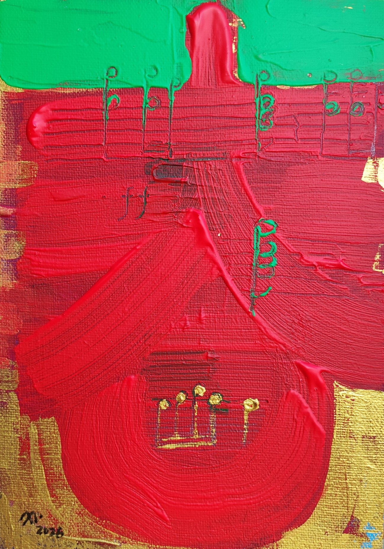 艺术家王晓鸣以抽象绘画回应这首承载着中国集体记忆的经典乐章,将节庆的热烈、时间的流动与文化的根系,凝结为富有节奏感的视觉语言。色彩不再只是被“观看”,而仿佛在呼吸、在敲击,与乐队的节拍同步,使音乐从时间的艺术延伸为空间的表达。