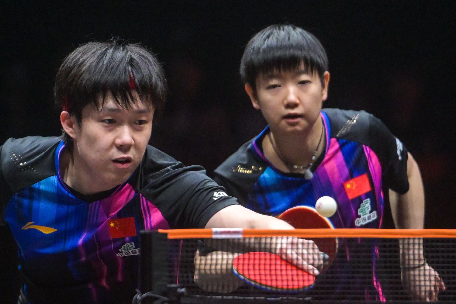 图为王楚钦(左)/孙颖莎在比赛中。(图/中新社)