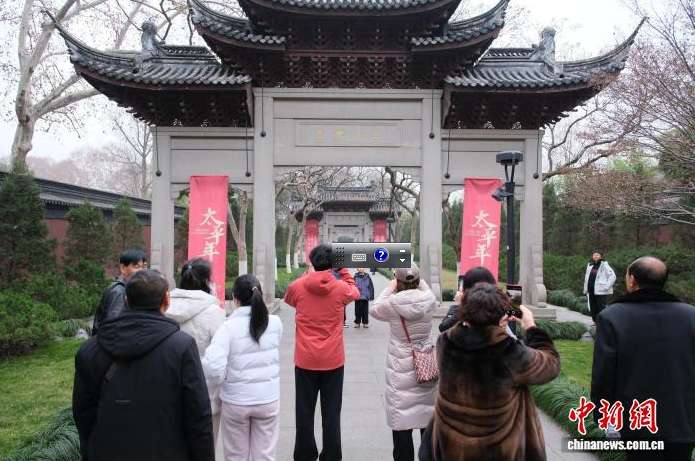 近日,游客在钱王祠外拍照留念。(图/中新网)