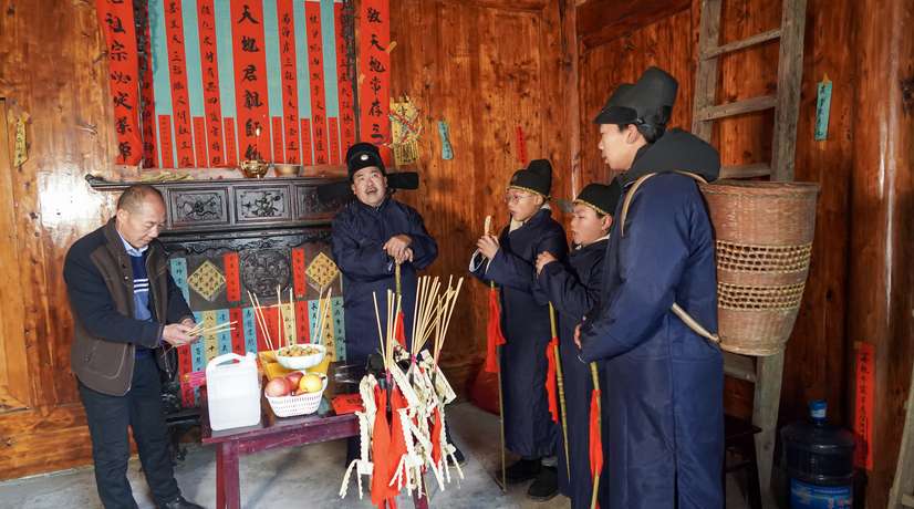 石阡县文化馆馆长饶莉介绍,“春官”唱词涵盖二十四节气的阐释,还有“渔樵耕读”等固定篇章。表演者需兼具传统知识储备与临场应对能力,将历史、伦理、生产等内容化为韵文,面向农民实现劝农耕作与文化启蒙的双重教化功能。