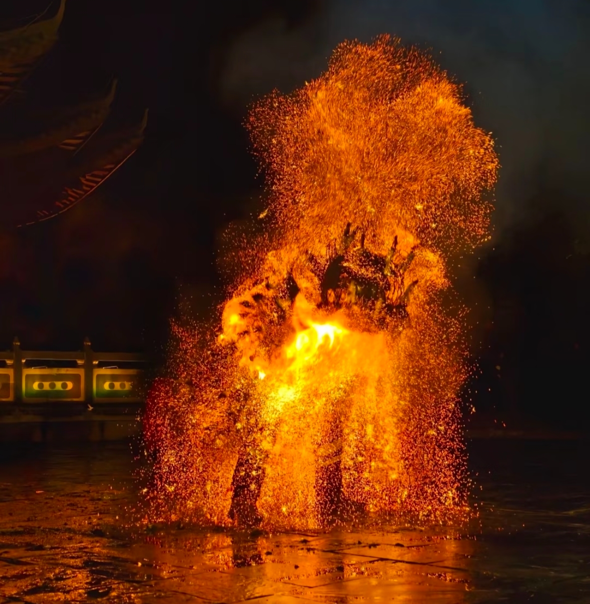 火花中的百年传奇 孟子故里山东邹城上演震撼“火虎”