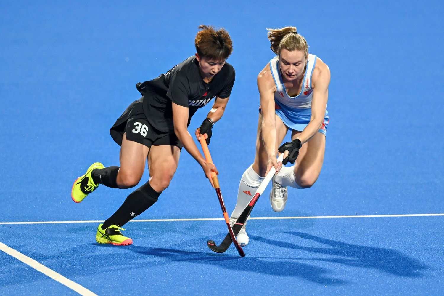 2月5日,广东云浮,2025/26FIH世界超级联赛第7赛季(中国站)比赛揭幕,中国女子曲棍球队0:3负荷兰队。(图/中新社)