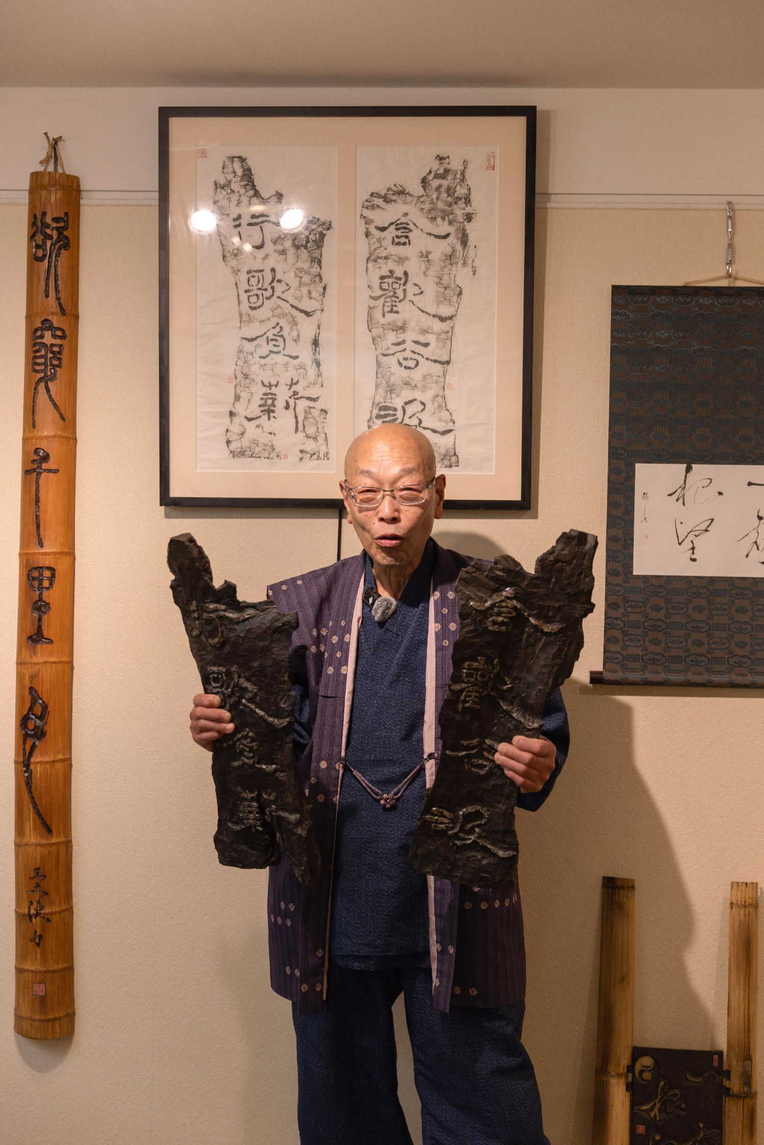 鈴木启义1956年生于北海道小樽市,号“四川”,师从日本书法名家宇野雪村。作为书法家、篆刻家与拓本家,他长期从多角度研究“书”的本质,在持续的探索与积累中形成了独具匠人精神的创作体系。他强调“字法”的准确严谨、“章法”的细腻与大胆并置,以及“刻法”中以刀为笔、赋予空间以生命的表现力,篆刻三法融为一体,缺一不可。其作品因此广受政界与艺文界推崇,曾为安倍晋三、野田佳彦等政治家,以及由美香织、丘美津子、第九代玉屋庄兵卫、井上雄彦、押井守等知名人士刻制印章。