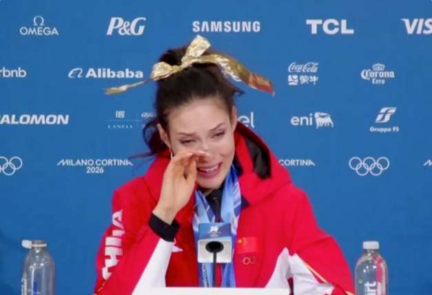 当地时间2月22日,谷爱凌在米兰冬奥会夺金后,在新闻发布会上谈及自己的外婆(谷爱凌称其“奶奶”)去世的消息,泪洒现场。(图/上海上观新闻)