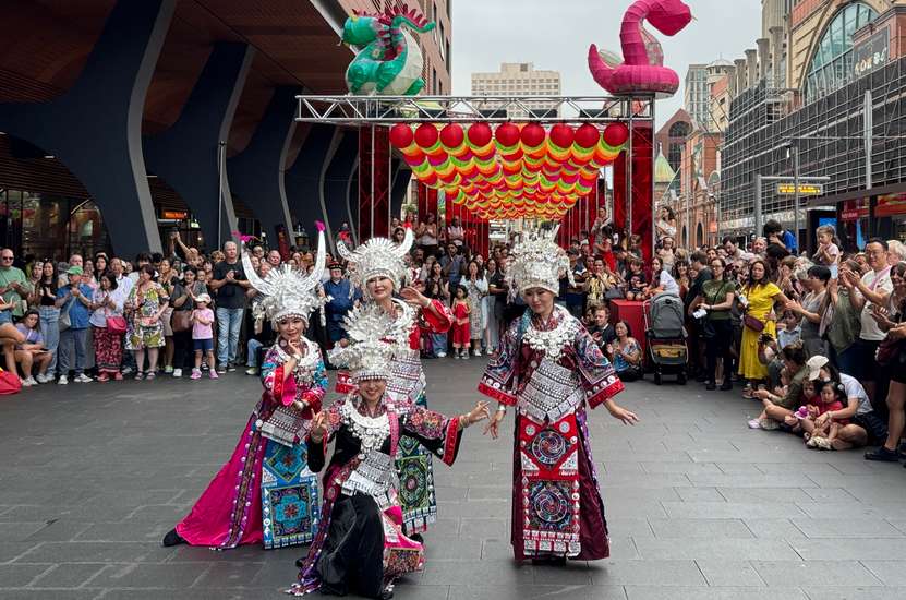 在澳大利亚,春节嘉年华艺术节正在举行。敦煌舞蹈、川剧变脸、舞龙舞狮等民族特色表演走上悉尼街头与剧院舞台,吸引众多观众。