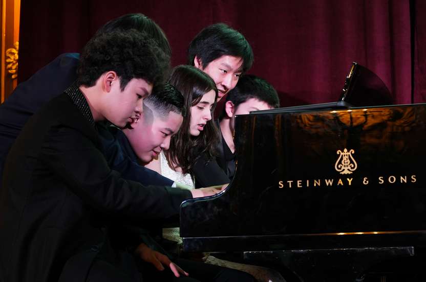 当地时间3月4日,郎朗国际音乐基金会在美国纽约举办慈善晚会。图为基金会“青年学者”计划的演奏者在晚会上表演。(图/中新社)