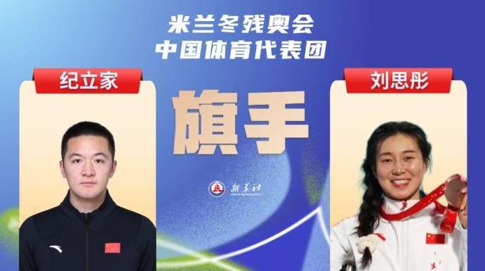 中国体育代表团当地时间5日宣布,女子高山滑雪运动员刘思彤和男子单板滑雪运动员纪立家将担任米兰冬残奥会开幕式中国体育代表团旗手。