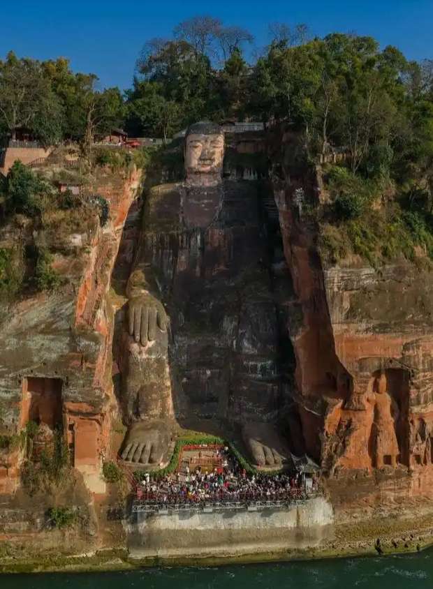 坐落在四川省乐山市南岷江东岸凌云寺侧的乐山大佛。(图/成都封面新闻)