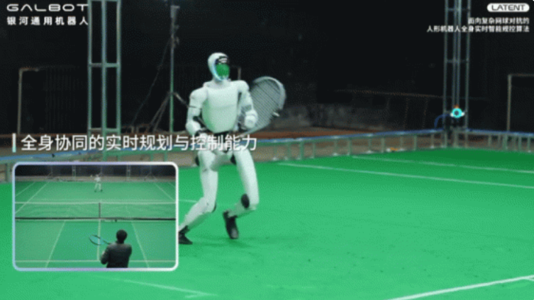 “从今天开始,你的网球搭子+1”。近日,一条机器人打网球的视频在中国社交媒体刷屏。北京海淀机器人企业银河通用在其官方微博发布消息:银河通用推出全球首个面向复杂网球对抗的人形机器人全身实时智能规控算法“LATENT”,让机器人不仅能与人类进行多拍对拉,甚至还能实现机器人之间的自主对打。这一次,机器人不再是那个“根据编程定点挥拍”的初学者,而是一个能主动思考的、人类真正的“对手”。