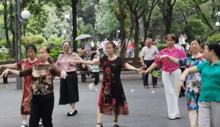 资料图:2022年6月,湖南省株洲市的神农公园内,一群老年人在跳交际舞。(图/长沙红网)