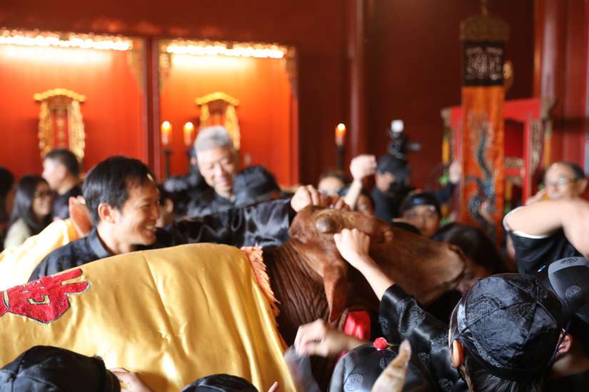据工作人员介绍,台南孔庙采用太牢之礼使用的是真牛、真羊、真猪。其中,民众称祭祀用牛的眼、耳、额头等部位的毛发为“智慧毛”。民间相信,经过祭孔的牛,其毛发可以帮助读书人增长智慧、保佑考试顺利,故而催生出这一活动。有当地市民表示,参加“拔智慧毛”活动是希望讨个好彩头,为在读小学六年级的儿子的未来学习送去祝福。