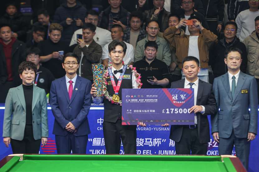 3月22日,2026斯诺克世界公开赛在江西玉山县收杆,泰国球手塔猜亚·乌努击败英格兰名将、“火箭”罗尼·奥沙利文,夺得冠军。(图/中新社)