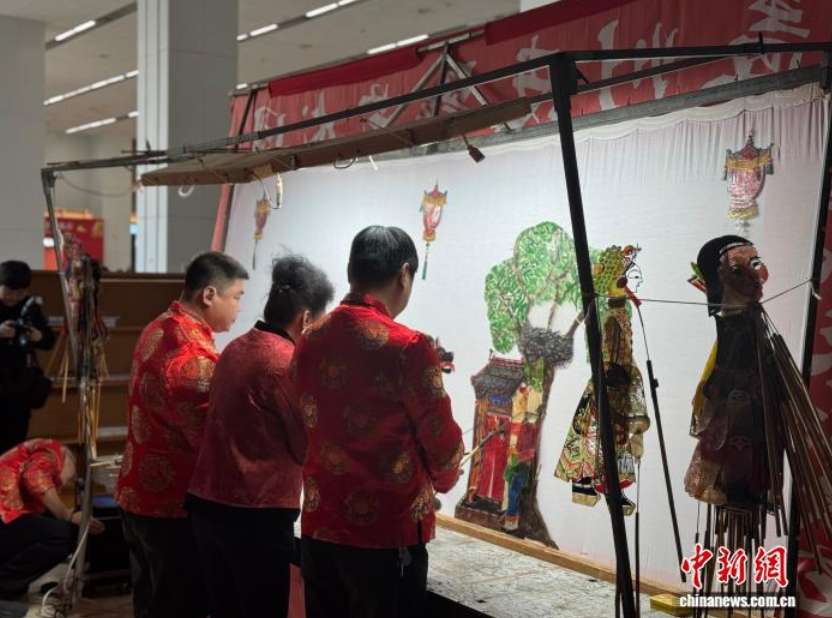 近日,盖州皮影艺术团走进辽宁省图书馆演绎皮影戏。(图/中新网)
