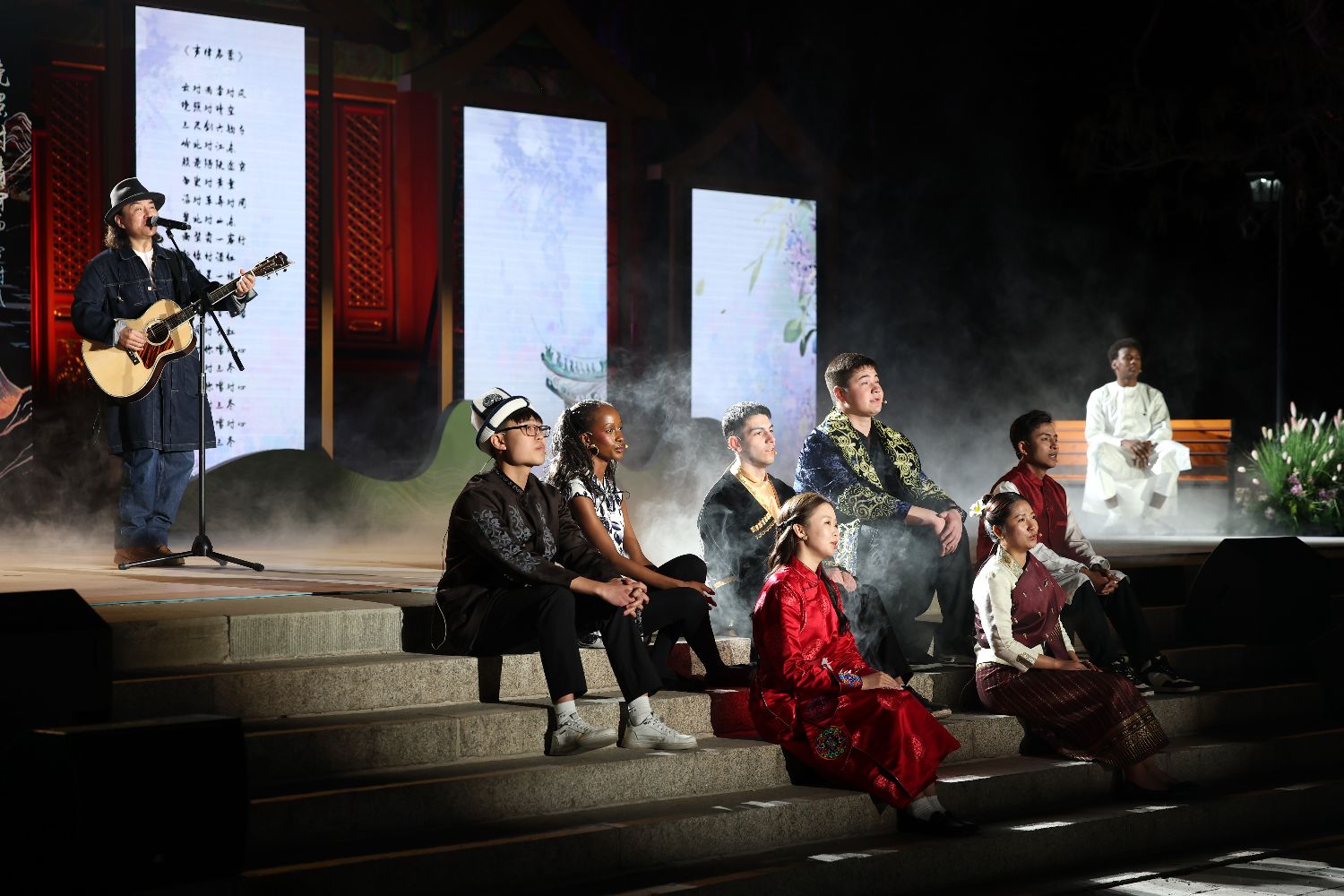 “远方”篇章将视野投向全球,来自9个国家的留学生在音乐人赵照《声律启蒙》的旋律中学习中国诗歌之美,记者方浩明、毕诺走上舞台讲述与中国文化有关的诗歌故事。