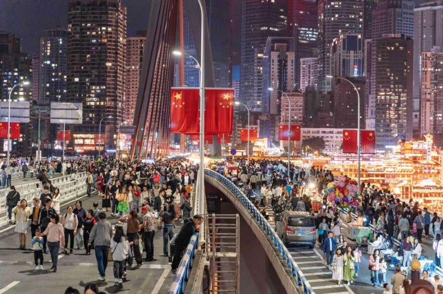 为提升游客打卡体验,重庆专门对“我在重庆”人行天桥进行改造,拓宽观景平台、优化拍摄视角。“以前游客在马路边拍照,人车混流,很危险,现在不少游客反馈视野更开阔、打卡更从容。”重庆市两江新区观音桥国际消费集聚区管理局党政办公室主任耿建峰说。