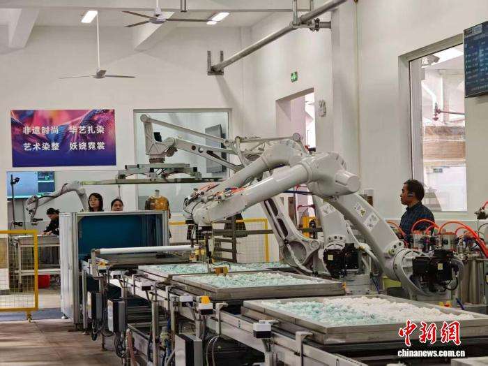 科技赋能带来了显著的产业变革。每条生产线上的“智能工匠”工作量堪比5名工人,可替代30%的扎染工序,将生产效率提升6倍;染料利用率从60%跃升至92%,正品率高达98%,同时大幅降低废水排放,实现了经济效益与绿色发展的双赢。