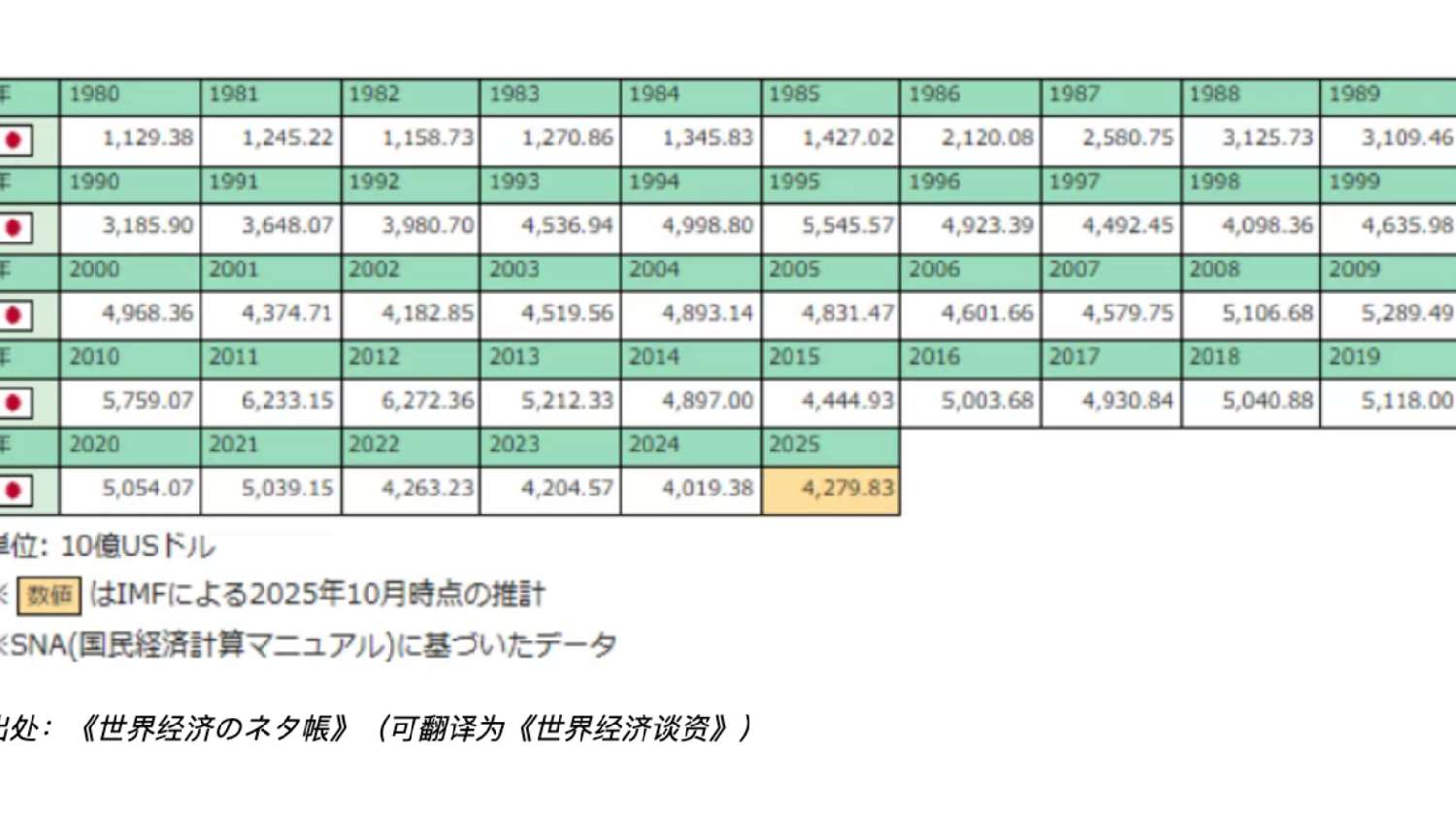 |出处:《世界经济のネタ帳》(可翻译为《世界经济谈资》)从悲剧到笑剧的“早苗经济学”