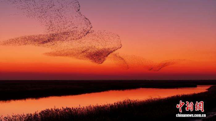 11月25日,山东东营黄河三角洲国家级自然保护区的“鸟浪”奇观。杨斌摄