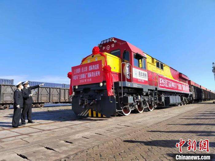 2022年10月13日,江苏首列中吉乌“公铁联运”国际货运班列发车。 易敏摄