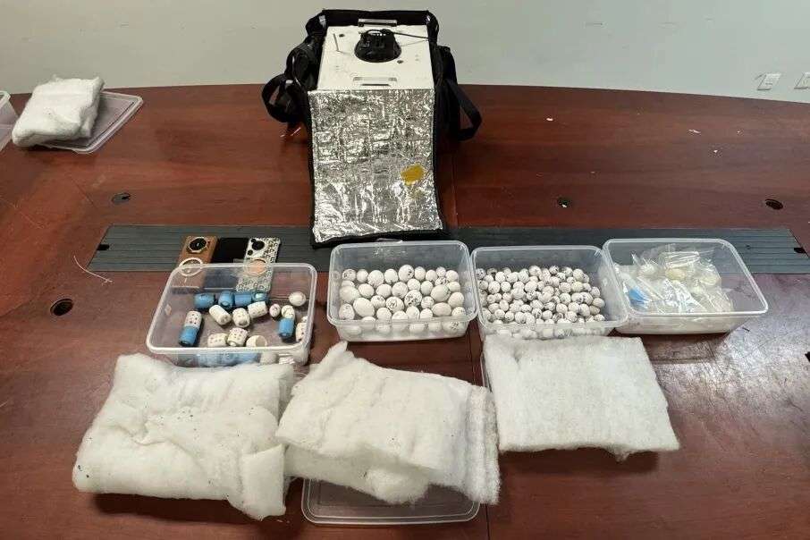 广州海关梳理高风险航班及对应查发重点,通过风险分析和重点关注,于2025年3月26日精准锁定1名高风险进境旅客,在其随身携带行李物品中查获鹦鹉蛋17枚,并及时拦截该旅客意图通过洗手间下水道冲走的鹦鹉蛋223枚,经鉴定为太阳锥尾鹦鹉Aratinga solstitialis、绿颊锥尾鹦鹉Pyrrhura molinae、黑帽锥尾鹦鹉Pyrrhura rupicola、非洲灰鹦鹉Psittacus erithacus、和尚鹦鹉Myiopsitta monachus等。