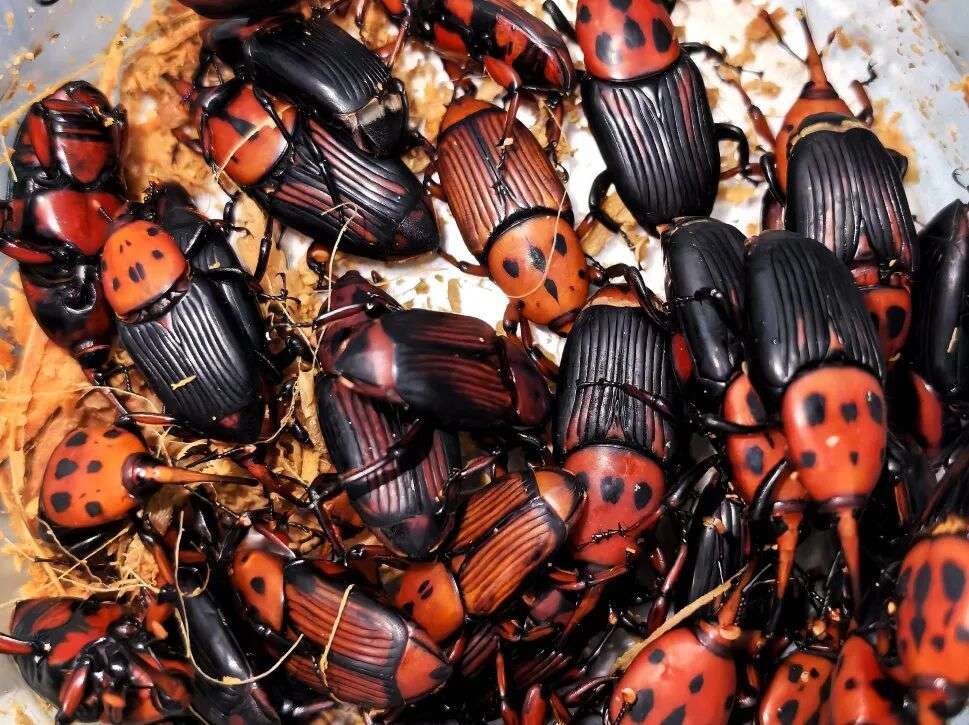 福州海关通过梳理高风险人员信息,紧盯重点渠道,于2025年3月21日精准拦截藏匿于进境旅客托运行李中的活体甲虫407只,经鉴定为波特莱竖角兜Golofa porteri、布尔梅斯特霸王鬼艳锹Odontolabis burmeisteri等52种甲虫。