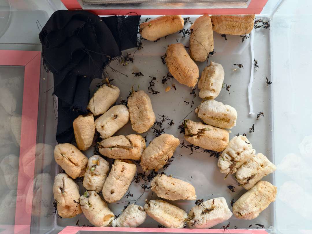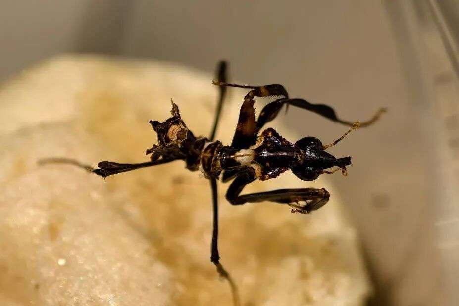 济南海关通过建立重点来源地、重点收件区域、重点收寄件信息等风险信息库,对重点邮包进行分析布控,于2025年8月29日精准拦截申报为“衣服”的进境邮件,查获活体昆虫魔王幽灵螳Idolomantis diabolica 341只及卵鞘25个。
