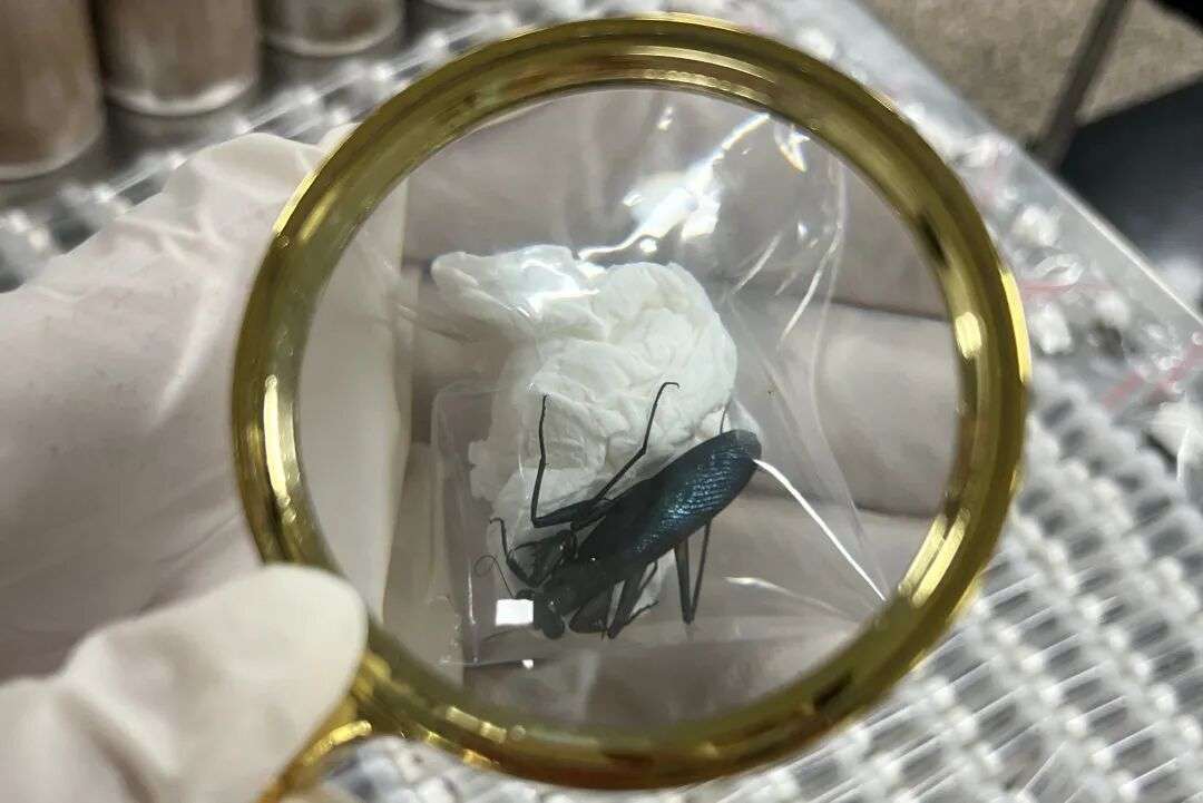 厦门海关利用CT机智能审图和智能识别设备,于2025年9月25日在进境旅客托运行李先期机检过程中发现异常,精准查获活体昆虫807只,经鉴定为巨人恐蚁Dinomyrmex gigas、华丽金螳Metallyticus splendidus。