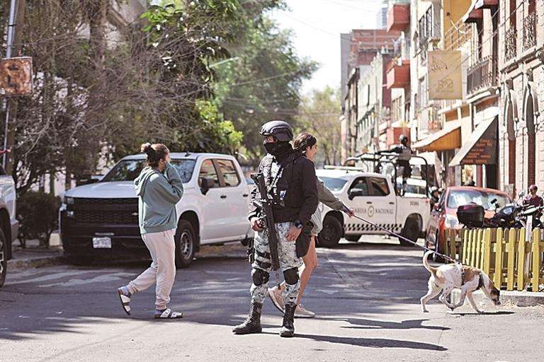 2月23日,在墨西哥首都墨西哥城,安全人员在街头执勤。新华社发